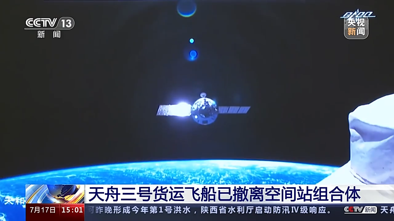 今天(17日),天舟三号货运飞船完成全部既定任务,于10时59分撤离空间站组合体。