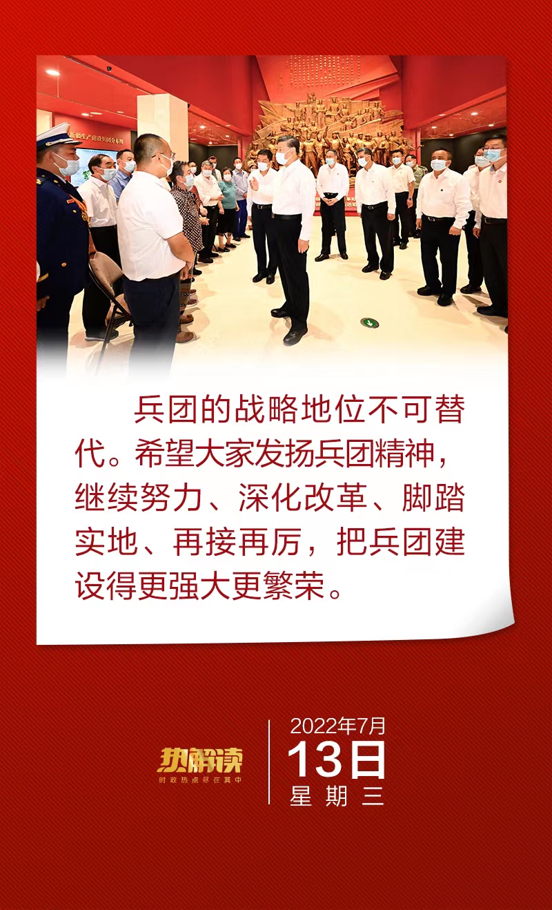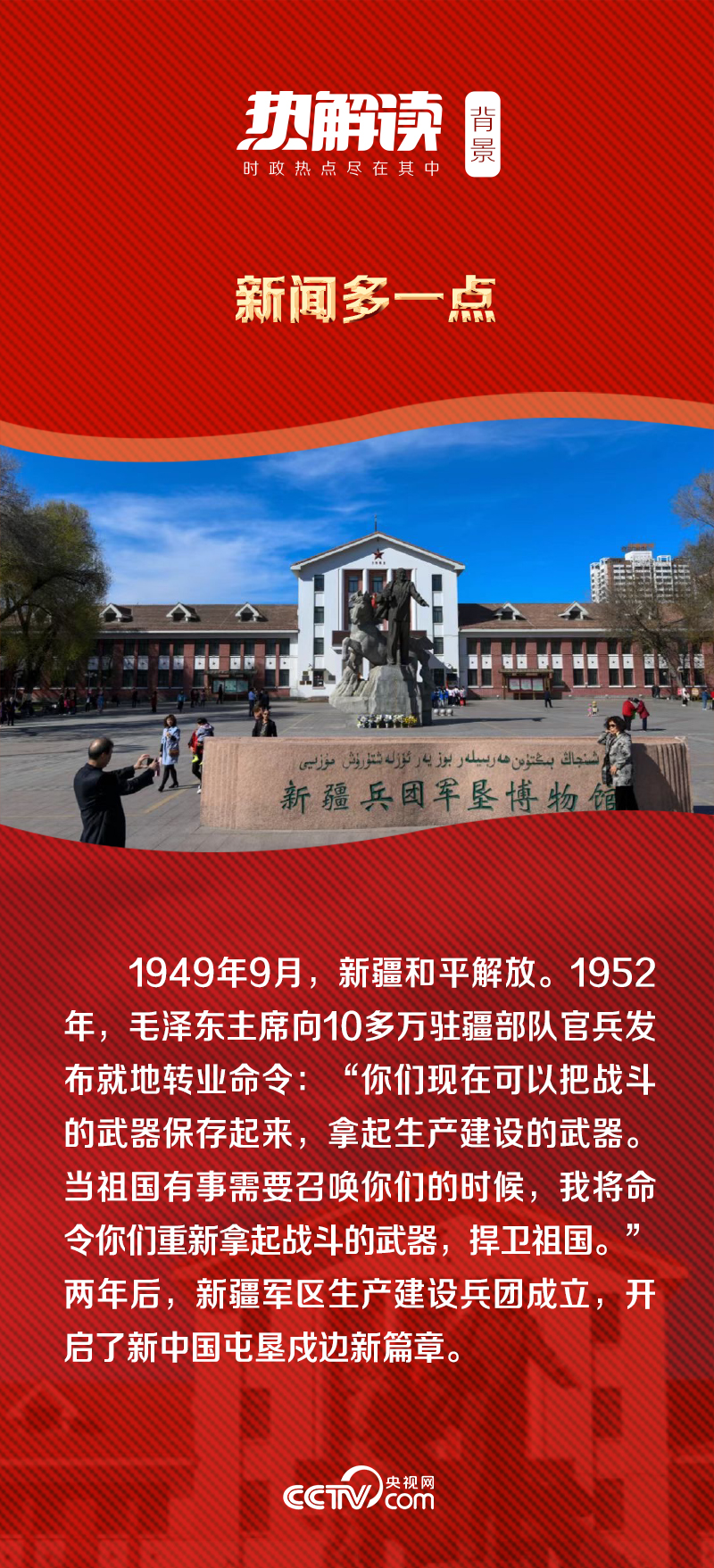 此次,重温峥嵘岁月,总书记在会见兵团老中青三代建设者代表时饱含深情地说:“新疆生产建设兵团为推动新疆发展、增进民族团结、维护社会稳定、巩固国家边防作出了不可磨灭的贡献。”