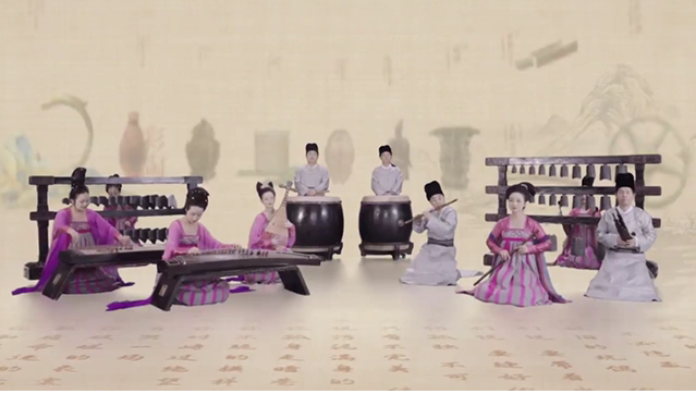 一幅唯美的古韵卷轴缓缓漫卷开,一队乐手或坐或立,沉吟拨弦、鼓瑟吹笙,衣袂飘飘间,雅乐声声入耳。“我有嘉宾,鼓瑟吹笙”,王孙诰编磬、琵琶、笛、中国鼓、瑟……9种古代乐器演绎流行音乐,入耳的是铿锵有力的《孤勇者》,古文物奏出新旋律。
