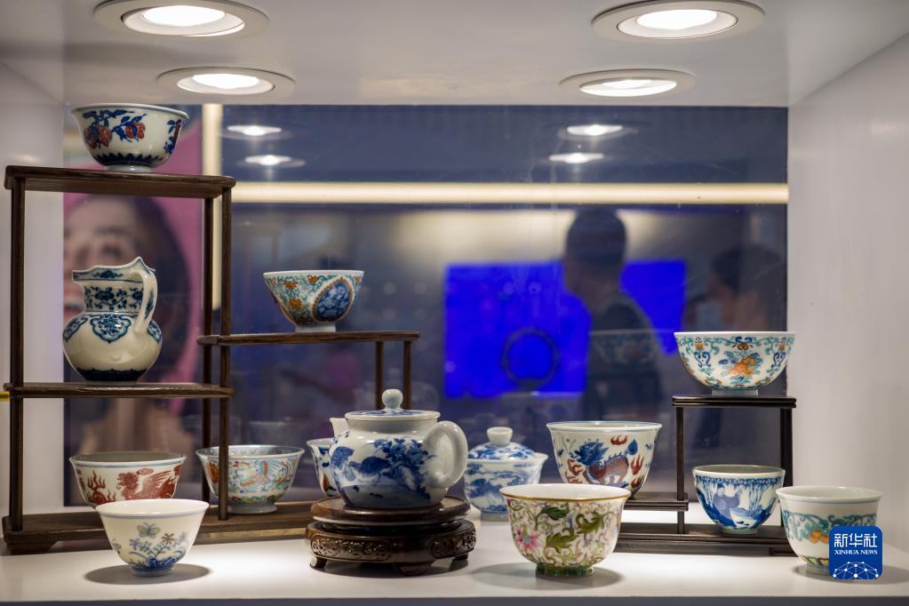这是7月29日在消博会江西省展台拍摄的瓷器。