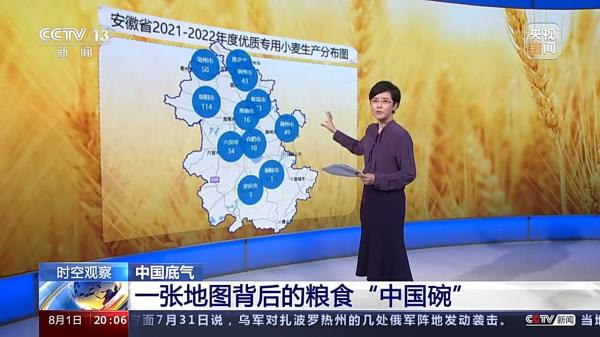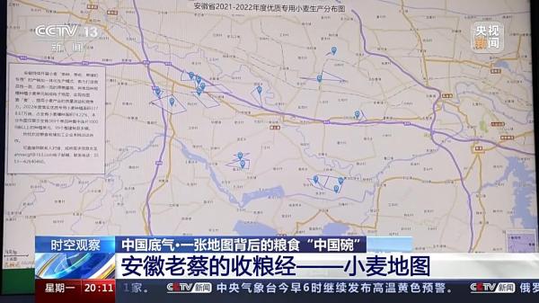 今年安徽夏粮总产量达1722.4万吨,居全国第3位;比2021年夏粮增产22.5万吨,增量居全国第2位,全省夏粮呈现面积、单产、总产和效益“四增”的特点。占比74%的优质专用小麦,助力增产。再回到老蔡,作为粮食经纪人,还差20万亩的小麦收购目标,老蔡决定主动出击。究竟去哪里能收购到优质小麦呢,老蔡的收粮经里的第三个关键词出现了:地图。
