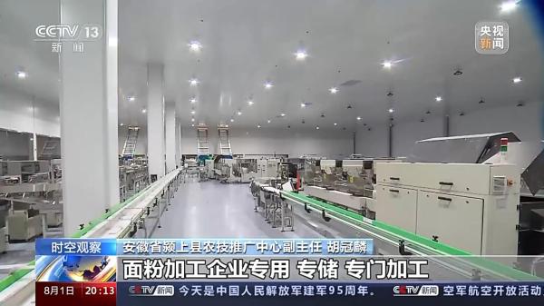 安徽颍上县农技推广中心副主任胡冠麟:给农民带来收益,优质优价。面粉加工企业专用、专储、专门加工,强筋的也行,弱筋的也行。分类加工以后,它的效益也提高了,每袋面粉能多卖个十块二十块钱,也很正常。