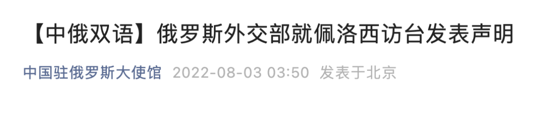 俄罗斯、白俄罗斯外交部就佩洛西访台发表声明,全文如下: