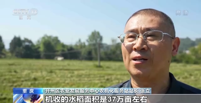 开州区农业发展服务中心农机化服务站站长 张立:全区水稻种植面积有42万亩左右,机收的水稻面积是37万亩左右,机收面积占全区水稻种植面积大约是88%。