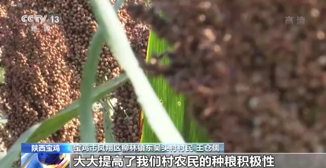 宝鸡市凤翔区柳林镇东吴头村村民 王仓儒:高粱亩产原来在七八百斤,今年的高粱从目前的长势来看,亩产都在1000斤以上,大大提高了我们村农民的种粮积极性。产量增收了,农民的钱袋子也就增收了。