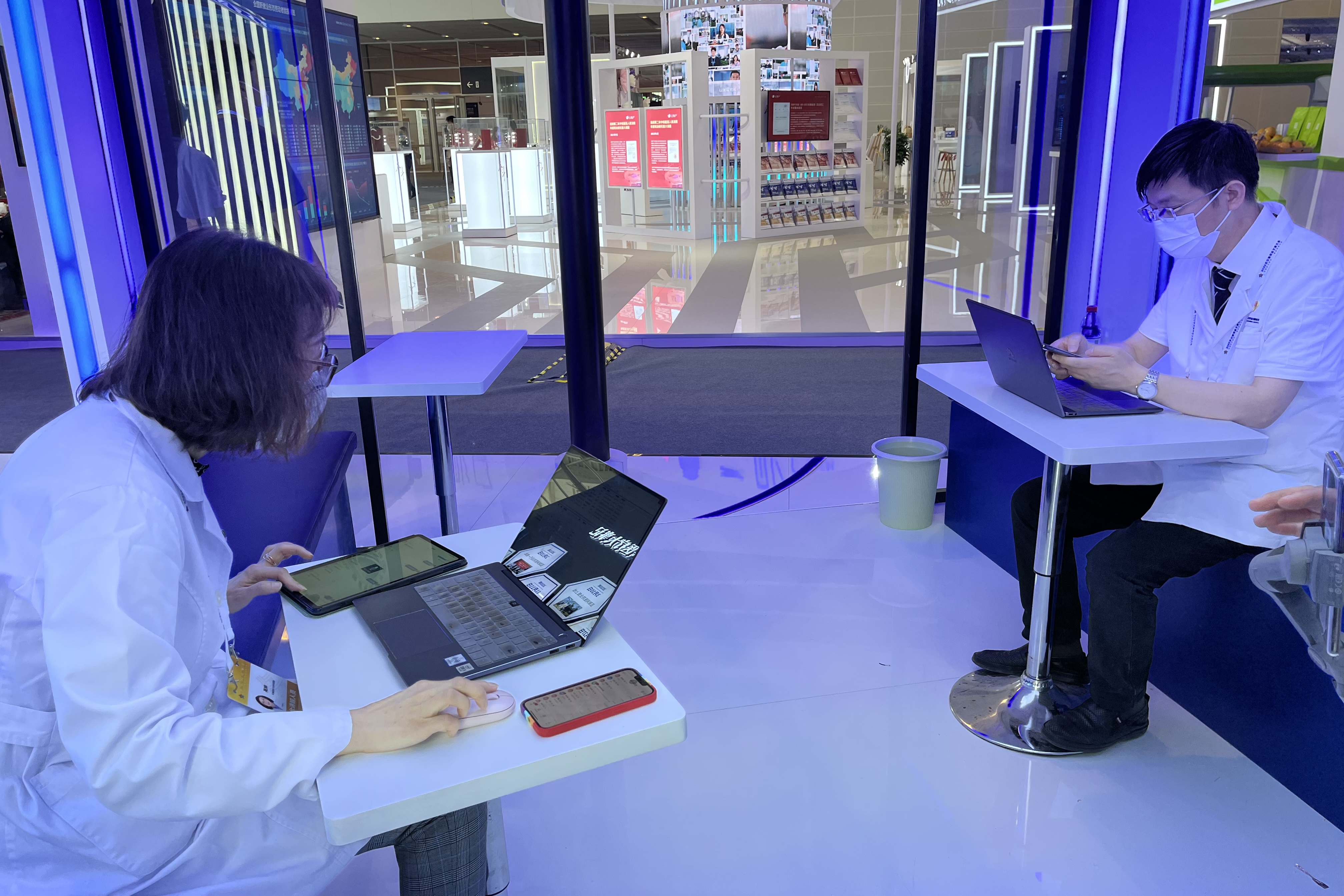 记者来到天津医科大学总医院互联网医院展区,这里的工作人员介绍,经过两年多的发展,该互联网医院已经开通用药指导、检查预约、入户护理、数字胶片、专病管家等全流程互联网医疗服务,每天的接诊人数最高突破3400人次,2021年共接诊超过60万人次。