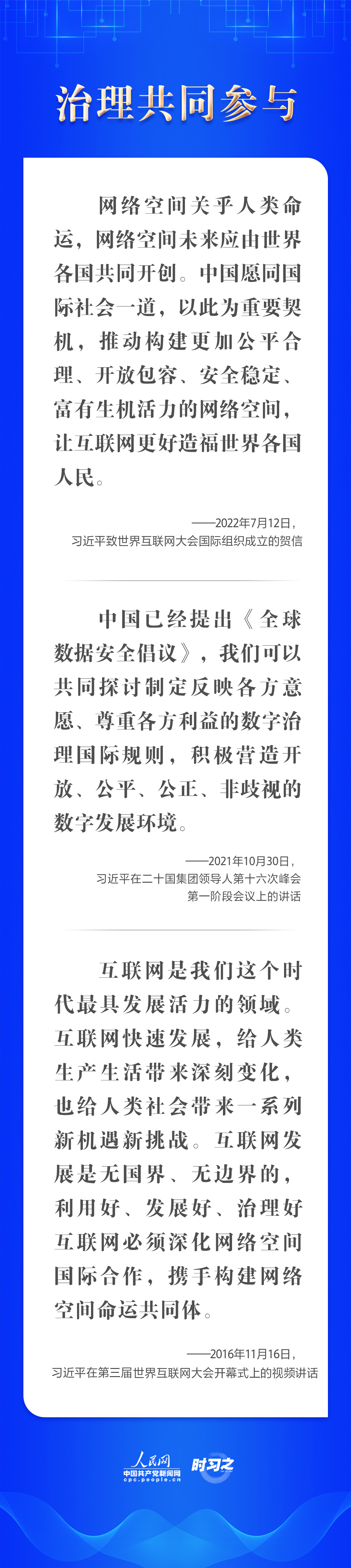 “网络空间关乎人类命运,网络空间未来应由世界各国共同开创。”中共中央总书记、国家主席、中央军委主席习近平一直高度重视网络强国建设,提出构建网络空间命运共同体的重要理念,倡导“发展共同推进、安全共同维护、治理共同参与、成果共同分享”,让互联网更好造福世界各国人民。
