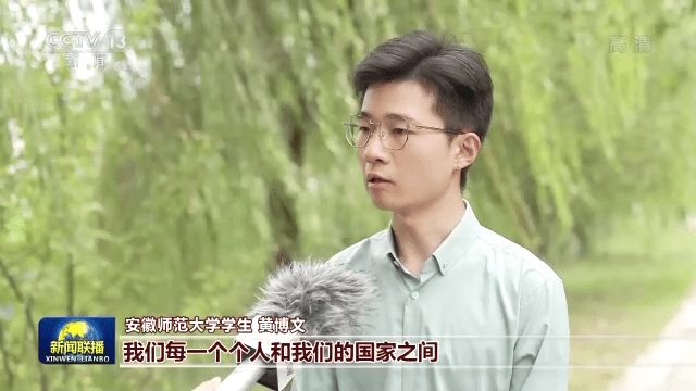 安徽师范大学学生黄博文:(他)能够让我更加清晰认识到,我们每一个个人和我们的国家之间是密不可分的这样一种关系,这种深切的家国情怀、社会责任感,也会让我在未来的工作当中,能够担起新时代中国青年的使命和责任。