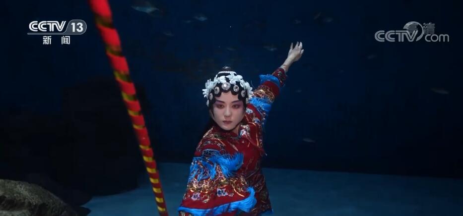 在上海海昌海洋公园,专业的水下演员身着传统戏曲服饰,正在上演一出精彩的国潮水下刀马旦,让游客领略到别样的国粹之美。