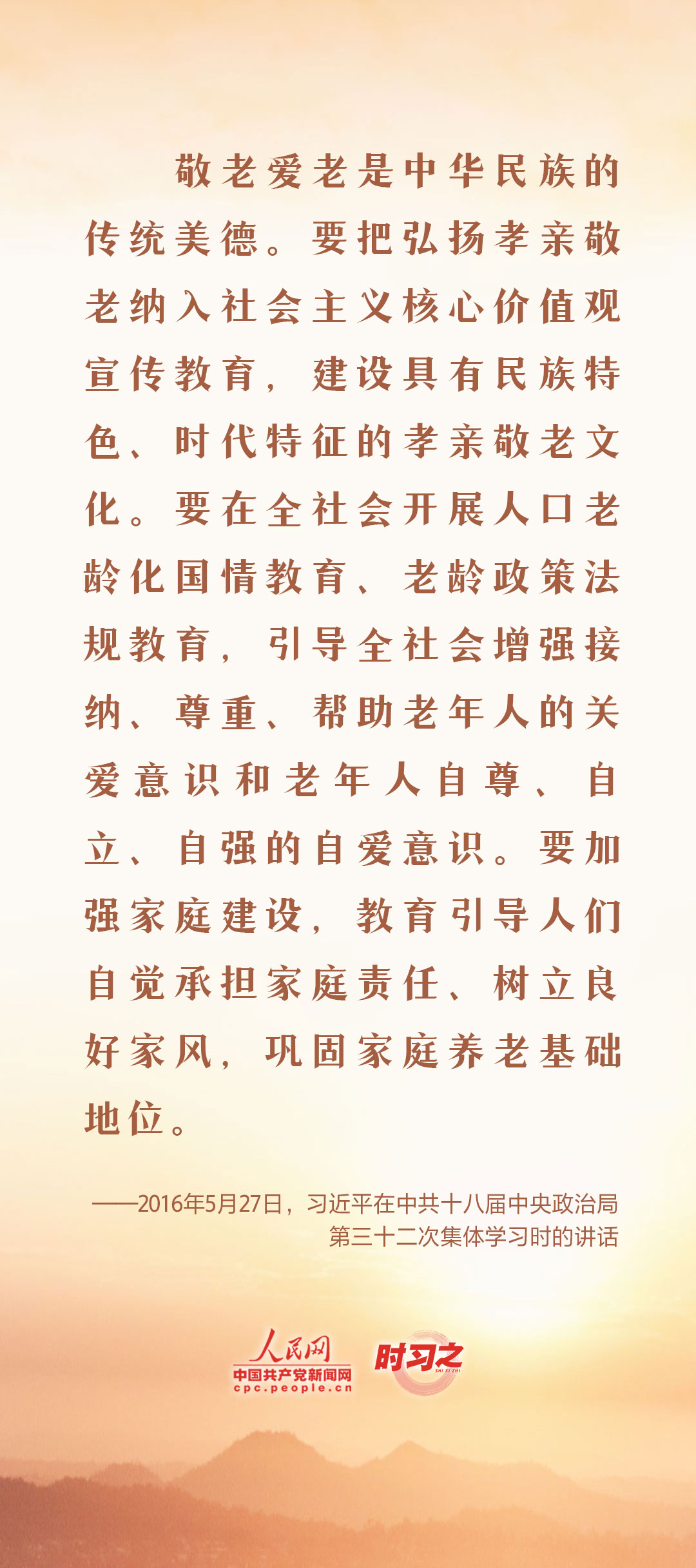 今天是九九重阳节,也是我国法定的第十个“老年节”。尊老敬老是中华民族的传统美德,爱老助老是全社会的共同责任。习近平总书记历来十分关心老年人,重视老龄工作,在多个场合作出重要论述,亲身践行尊老爱老优良传统,引领全社会形成良好风尚。