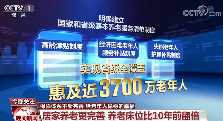 这十年,养老服务体系日趋健全。明确建立国家和省级基本养老服务清单制度,高龄津贴制度和经济困难老年人服务补贴制度、失能老年人护理补贴制度实现省级全覆盖,惠及近3700万老年人。中央财政累计投入359亿元支持养老服务设施建设,养老床位数达到812万多张,比2012年翻了一番,养老机构数量翻了三番,社区养老服务基本覆盖了城市社区和半数以上农村社区。
