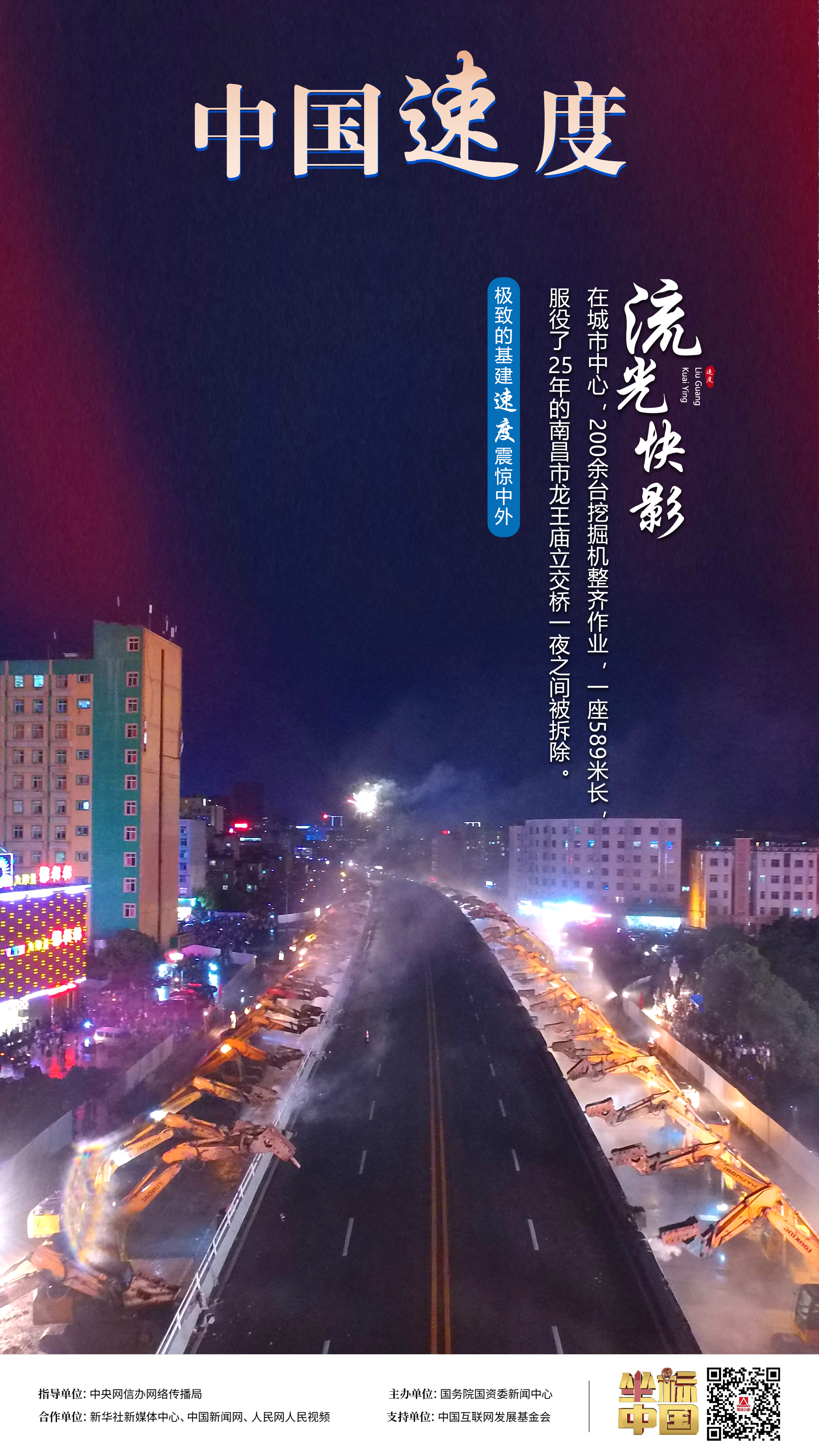 “基建狂魔”的速度有多快?眼睛再一闭一睁,8个小时过去了,589米长的立交桥拆没了。