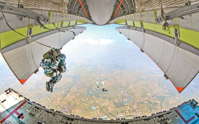 重塑力量结构,调整军兵种结构比例,优化军兵种、武警部队内部力量编成,大幅压减老旧装备部队,增加战略力量和新型作战力量比重,优化不同战略方向力量配置,打造具备多种能力和广泛作战适应性的部队。图为空降兵某旅开展伞降训练。