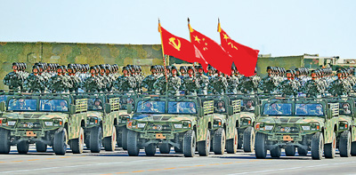 2013年3月,习主席在出席十二届全国人大一次会议解放军代表团全体会议时,明确提出党在新形势下的强军目标。2017年10月,习主席在党的十九大上明确党在新时代的强军目标是建设一支听党指挥、能打胜仗、作风优良的人民军队,把人民军队建设成为世界一流军队。全军牢记强军目标,深入推进政治建军、改革强军、科技强军、人才强军、依法治军,全面加强练兵备战,坚决履行新时代使命任务,在中国特色强军之路上迈出坚实步伐。图为2017年7月30日上午,庆祝中国人民解放军建军90周年阅兵在朱日和联合训练基地隆重举行,这是护旗方队接受检阅。