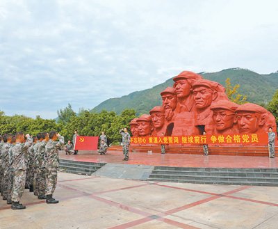 全军部队深入开展“学习践行强军目标、做新一代革命军人”“维护核心、听从指挥”“传承红色基因、担当强军重任”等主题教育,聚焦“忠诚维护核心、矢志奋斗强军”深化主题教育,着力铸牢听党指挥、奋斗强军的思想政治根基。图为战略支援部队某部在四川省冕宁县红军广场重温入党誓词。