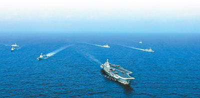 加强以海上方向为重点的军事斗争准备,组织东海、南海、黄海等重要海区和岛礁警戒防卫,开展海上联合维权执法,妥善处置海空情况,应对海上安全威胁和侵权挑衅行为,执行钓鱼岛维权、东海防空识别区管控、南海常态化战巡、出岛链远海训练、多型战机绕台岛巡航等重大任务。
