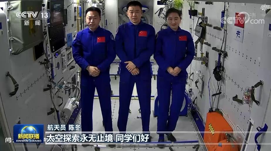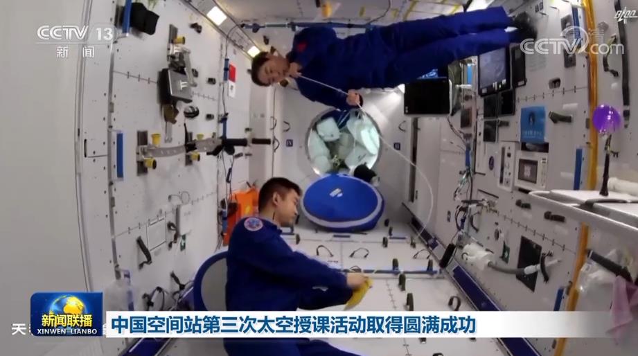 央视网消息(新闻联播):今天(10月12日)16时01分,“天宫课堂”第三课在中国空间站开讲,新晋“太空教师”陈冬、刘洋、蔡旭哲为广大青少年带来一场精彩的太空科普课,这是中国航天员首次在问天实验舱内进行太空授课。