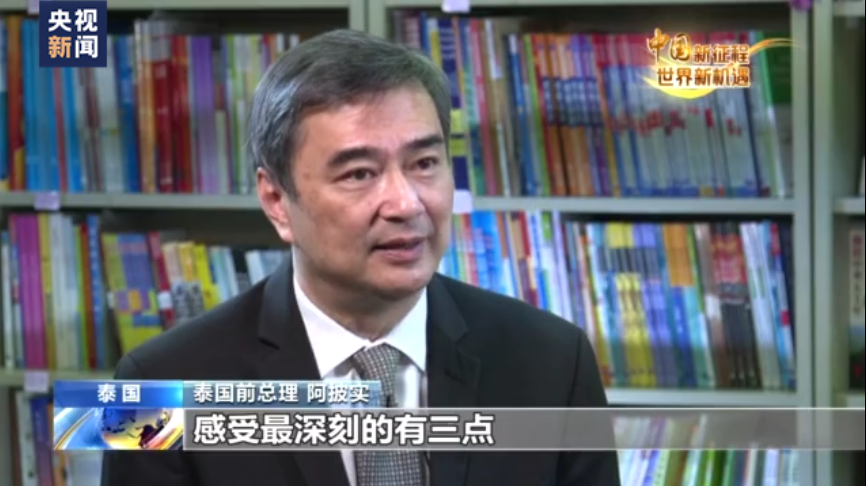 泰国前总理阿披实表示,习近平主席对治理国家有坚定的信念和清晰的思路,中国共产党的管理经验值得借鉴。