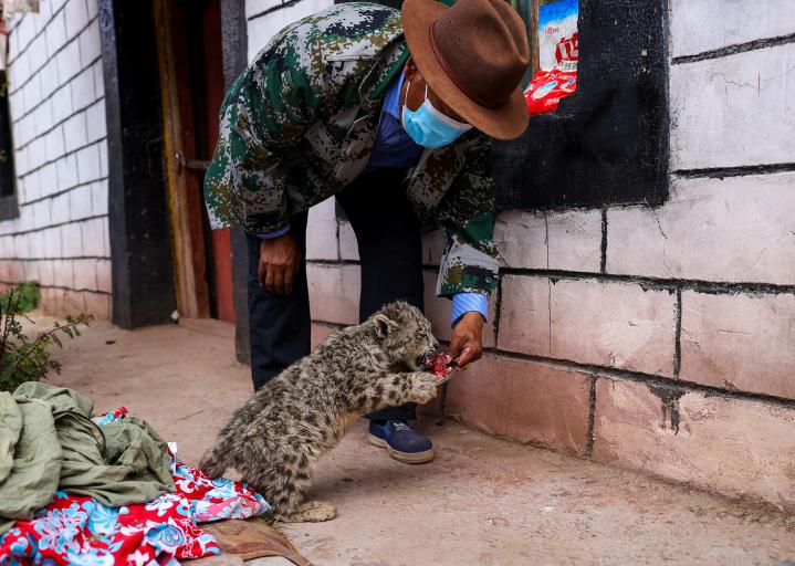 已经退休的林周县农牧局工作人员格桑顿珠的家里,暂时喂养着一只被村民发现并救助回来的国家一级保护动物雪豹幼崽。小雪豹目前健康状况稳定,当地工作人员计划将其送往拉萨市曲水县野生动物救护站养育。