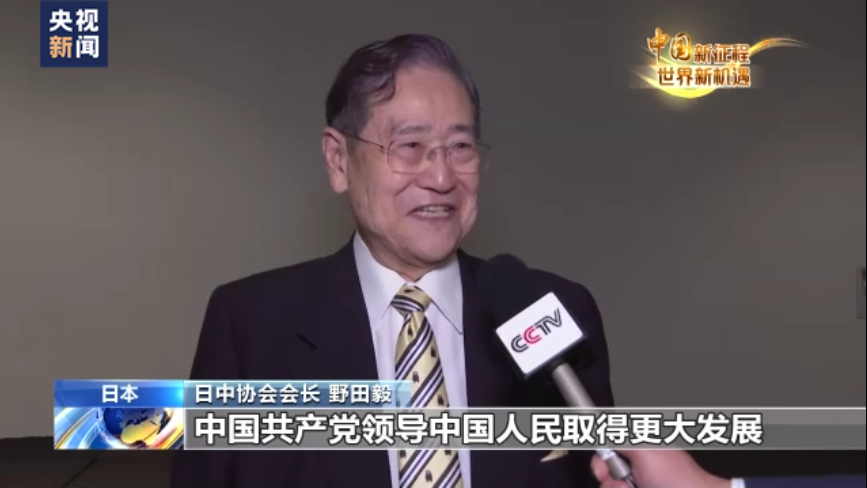 日中协会会长 野田毅:中国发展的步伐矫健,发展速度令人惊叹,这正是因为有中国共产党的领导才得以实现的,我衷心期待通过这次大会,中国共产党领导中国人民取得更大发展。