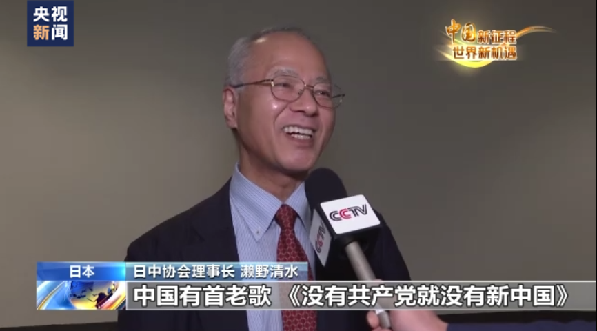 日中协会理事长 濑野清水:中国有首老歌《没有共产党就没有新中国》,这首歌曲的含义至今毫不褪色,只有中国共产党这样具有远见卓识的优秀政党才能领导中国,中国共产党的领导作用非常重要。