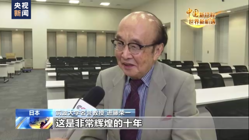 筑波大学名誉教授 进藤荣一:这是非常辉煌的十年,可以用“三级跳”来作比喻。从国际关系方面来说,提出了共建“一带一路”倡议,这是中国智慧。