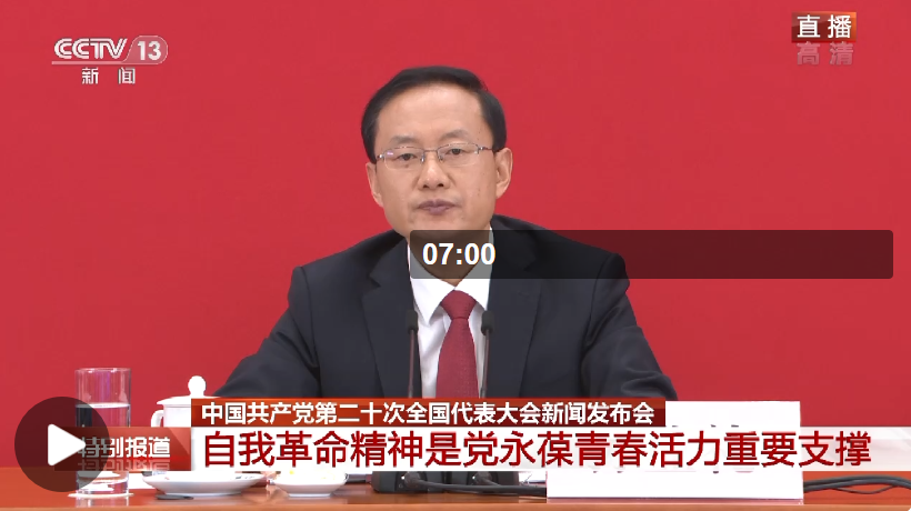二十大新闻发言人:自我革命精神是党永葆青春活力的重要支撑