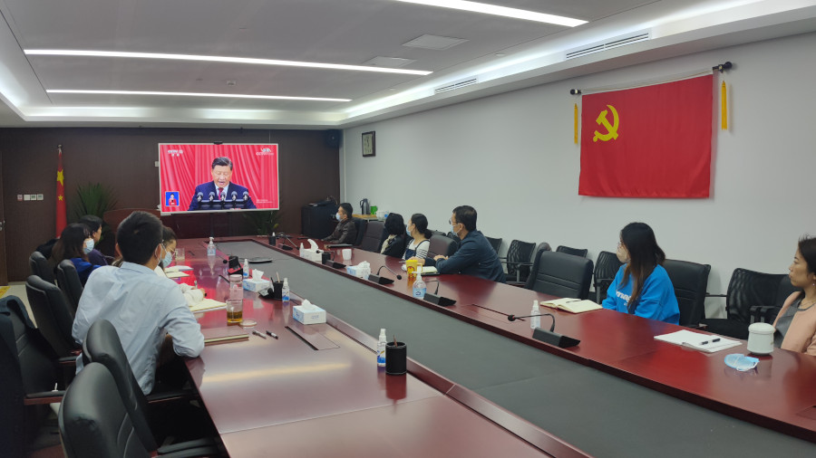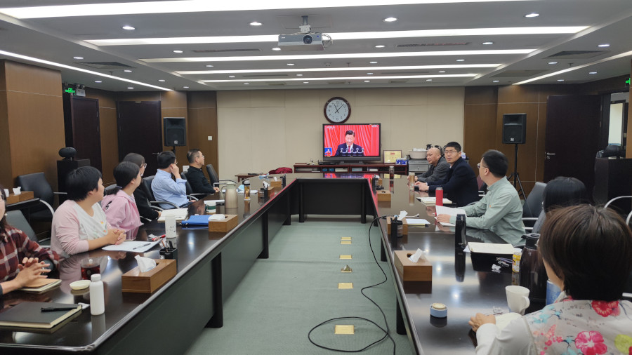 中央台办在家办领导、机关局正处级以上党员干部、事业单位领导班子成员在主会场集中收听收看习近平总书记的报告。
