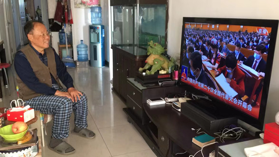 离退休干部采取集中与分散相结合的方式收听收看习近平总书记的报告。