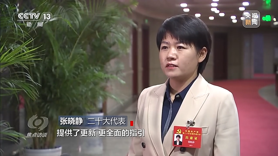 二十大代表 张晓静:二十大报告为我们接下来的奋斗提供了更新、更全面的指引,开启了健康中国建设新征程,我们也要为保障人民健康这个重大使命继续努力,让中国人民生活更美好。