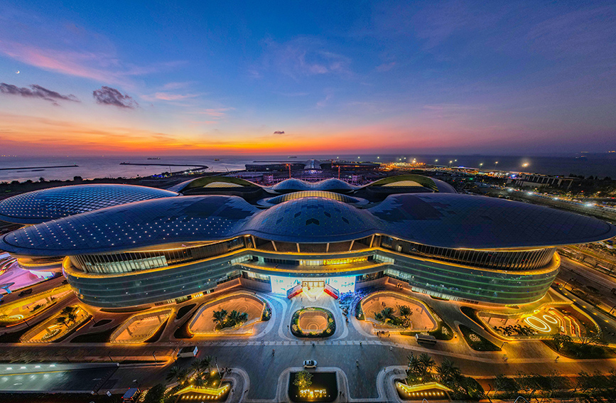 据了解,海口国际免税城总建筑面积约93万平方米,10月28日正式开门迎客,目前,已有超过800个国际国内知名品牌确认入驻。开业后,海口国际免税城将成为继三亚国际免税城后世界最大单体免税店,也将成为海南自贸港建设标志性项目之一。苏弼坤摄(人民图片网)