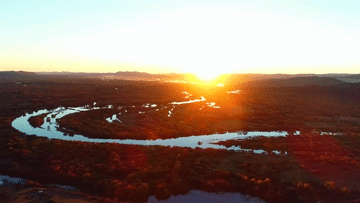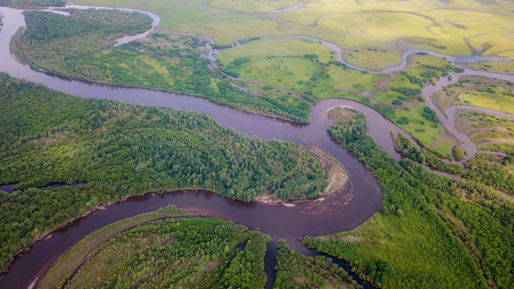 蜿蜒清澈的河流从湿地中贯穿而过