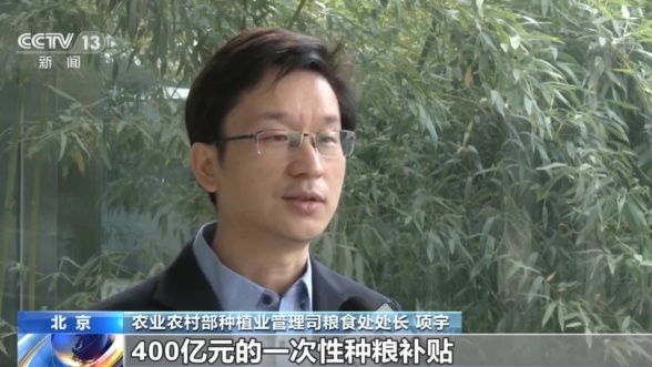 农业农村部种植业管理司粮食处处长 项宇:中央财政3次向实际种粮农民合计发放400亿元一次性种粮补贴、比上年翻了一番。扩大了轮作资金规模补助大豆玉米带状复合种植,释放了重农抓粮的强烈信号。