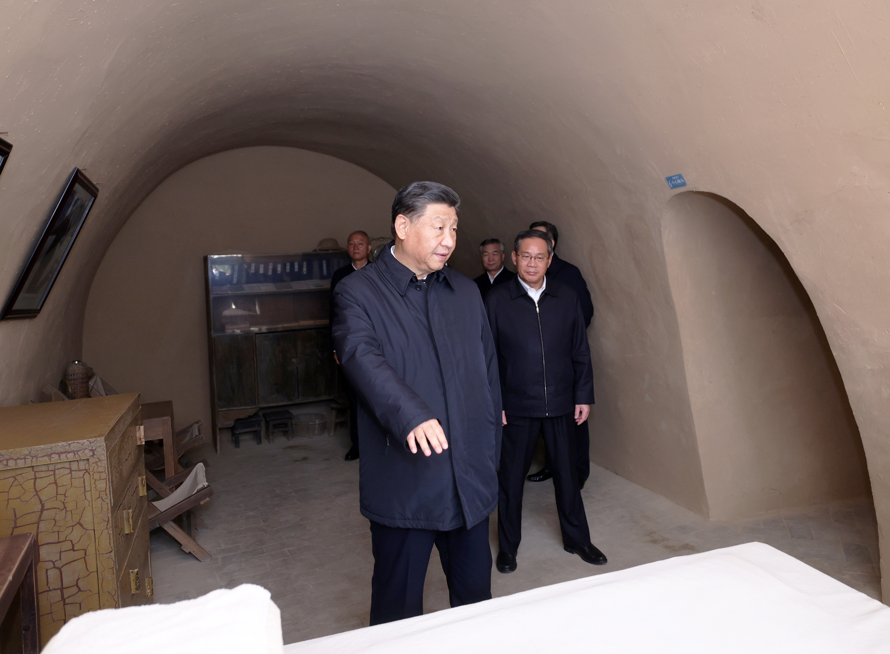 △ 10月27日,中共中央总书记、国家主席、中央军委主席习近平带领中共中央政治局常委李强、赵乐际、王沪宁、蔡奇、丁薛祥、李希,瞻仰延安革命纪念地。这是习近平等在杨家岭参观毛泽东旧居。