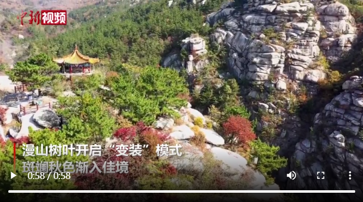 深秋时节,位于山东省青岛市的崂山风景名胜区已进入红叶最佳观赏期,漫山树叶开启“变装”模式。