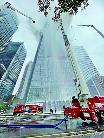 2022年深圳市消防宣传月启动仪式在前海世茂大厦隆重举行。一场超高层灭火救援实战演练拉开了2022年深圳消防宣传月的序幕。应急管理部消防救援局供图