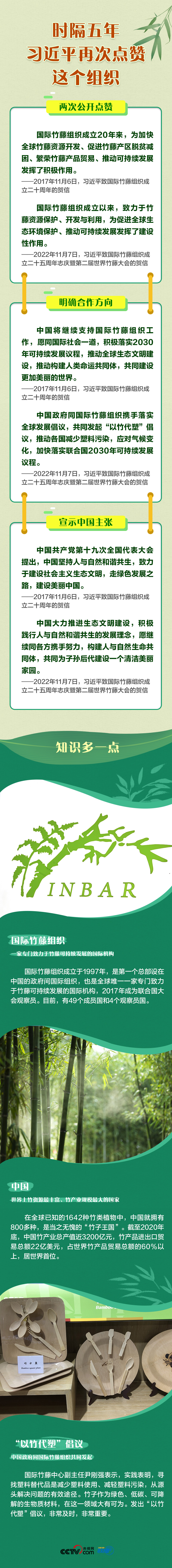 这是习近平主席第二次向这个政府间国际组织致贺信。2017年11月,他首次致信国际竹藤组织,祝贺该组织成立二十周年,表示“中国将继续支持国际竹藤组织工作”。两封信,蕴含着习近平主席对生态文明建设的深刻思考,表达了他对构建人与自然生命共同体的殷切希望。央视网《联播+》特推出长图,与您一起学习。