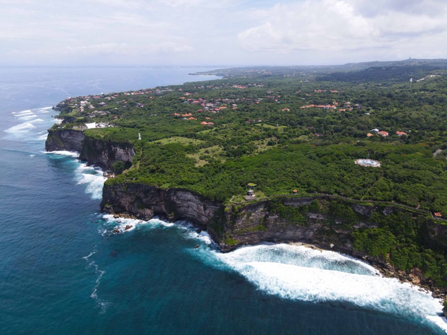 这是2021年12月22日拍摄的印度尼西亚巴厘岛情人崖(无人机照片)。新华社记者 徐钦 摄