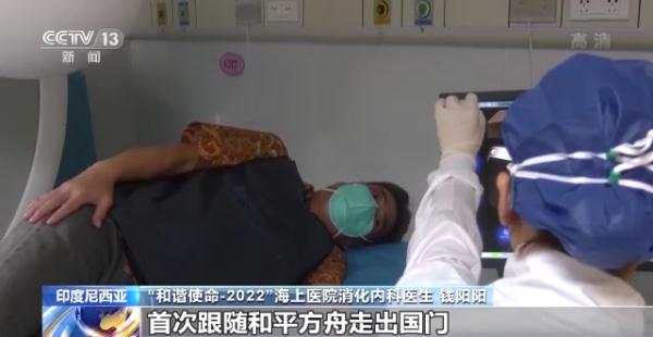 “和谐使命-2022”海上医院消化内科医生 钱阳阳:刚刚他们参观的是由我国自主研发的磁控胶囊胃镜系统。检查过程中,患者吞服这样的一颗小胶囊之后,我可以通过操控手柄控制磁球的运动,来达到胶囊在胃内的精确运动。这也是磁控胶囊胃镜系统首次跟随和平方舟走出国门,目前我们已为印尼当地民众进行了20余例胶囊胃镜检查。