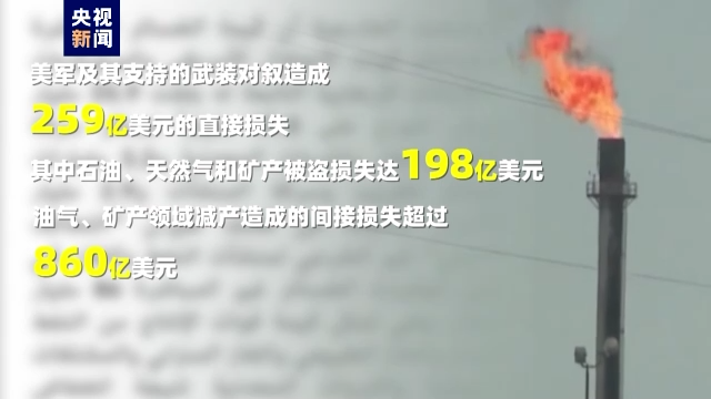 据叙利亚外交部数据显示,美军及其支持的武装对叙造成259亿美元的直接损失,其中石油、天然气和矿产被盗损失达198亿美元。此外,油气、矿产领域减产造成的间接损失超过860亿美元。