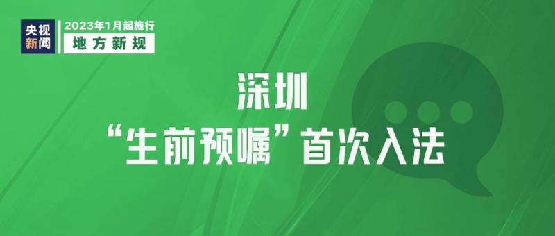 新修订的《深圳经济特区医疗条例》在全国首次将患者“临终决定权”——“生前预嘱”写入地方性法规,于2023年1月1日施行,其中明确,医疗机构在患者不可治愈的伤病末期或者临终时实施医疗措施,应当尊重患者的“生前预嘱”。