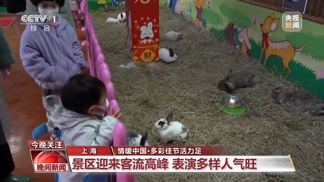 假期前三天,上海多家景区、城市地标迎来客流高峰。在上海野生动物园,来自不同国家的不同品种的兔子们齐聚在一起,萌态各异,吸引不少游客驻足。上海海昌海洋公园还精心准备了水下舞狮、非遗打铁花等多项年味表演,并通过分时预约、调整优化路线等确保运营平稳有序。