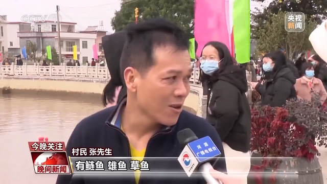 村民 张先生:捕了几十斤吧,有鲢鱼、雄鱼、草鱼。搞得很好,很丰富,人气很旺,年年有“鱼”。