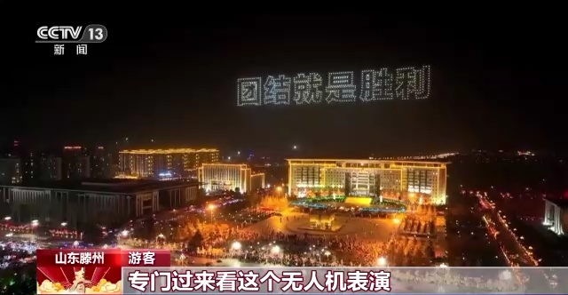 在山东滕州,夜幕降临,上千架无人机腾空而起,以天为幕、以光为笔,为广大市民献上一场美轮美奂的“视觉盛宴”。