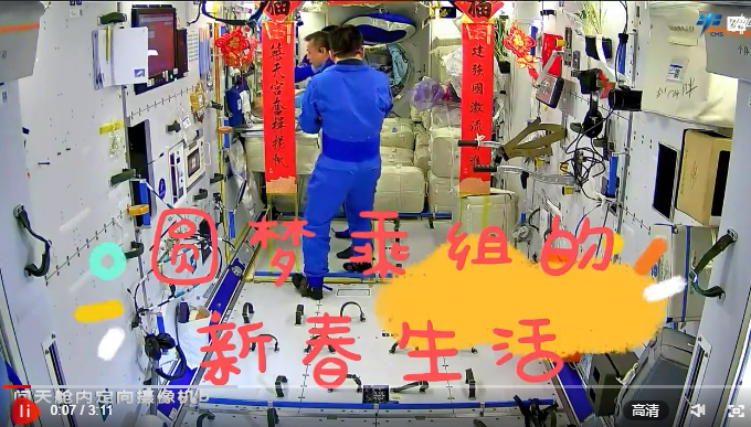 春节期间,圆梦乘组将中国空间站装饰得喜气洋洋,在400公里外和所有中国人一起度过了这个难忘的“太空春节”。一起来看看航天员们吃年夜饭、看春晚、写书法等春节活动,更有航天员带你第一视角体验空间站内穿舱,快来看看吧!