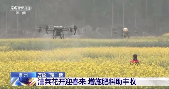 在贵州兴义,随着最早的一批油菜花竞相开放,当地农户正抓紧开花结荚的关键期喷洒肥料,为丰收保驾护航。