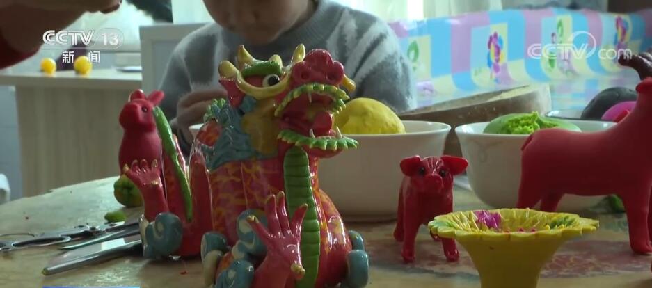 同样代表了对新一年美好期盼的,还有庄河当地流传了几百年的属相灯,家里几口人就要点几盏各自属相的属相灯。制作属相灯的面不是白面,是豆面加玉米面,和面时要添加红色的颜料,越红越好,寓意着红红火火。通常一家人的属相灯要放在一起,代表人丁兴旺。即便有亲属在外地回不来,家里人也会替他点一盏属相灯,希望他在异乡平平安安、兴旺吉祥。属相旁边这朵小花是用来插蜡烛的烛台,也是用面捏的。除了点亮各自的属相灯,很多人家还会在水缸里放个水瓢,或者就在水池旁边点一个鲤鱼灯,寓意年年有余。 等待夜幕降临时,一盏盏造型可爱的属相灯就将带着各种美好的祝愿被点燃,寄望着来年美好的愿景。