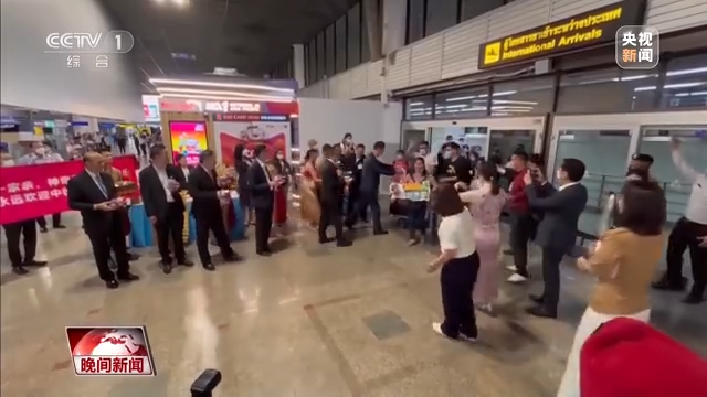 泰国国家旅游局在曼谷廊曼机场组织了热烈的欢迎仪式,泰国国家旅游局局长育塔萨到机场迎接中国游客。