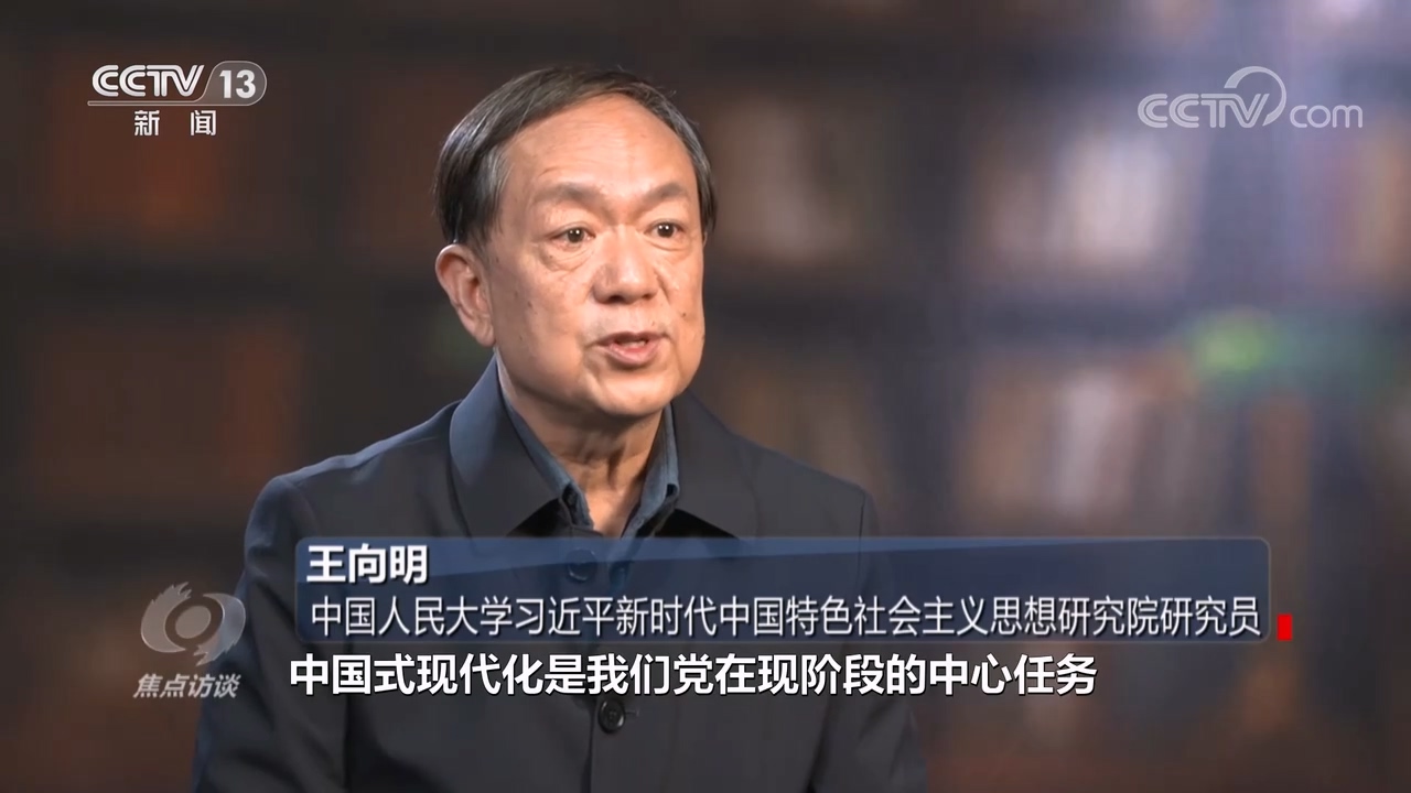 中国人民大学习近平新时代中国特色社会主义思想研究院研究员王向明:“党的二十大非常明确提出来,中国式现代化是我们党在现阶段的中心任务,中心这个关键词非常值得我们去把握。什么叫中心?中心就是我们各项工作都应该围绕这个中心,都要服务这个中心,实现中华民族伟大复兴,它的中心议题就是实现中国式现代化。”