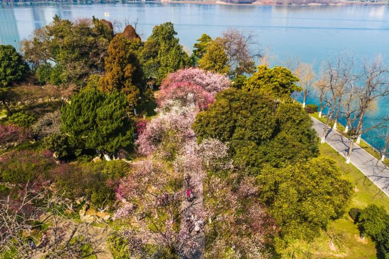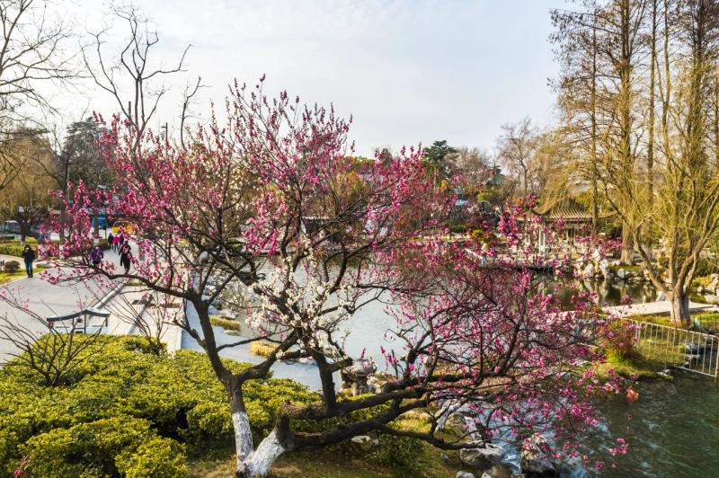 除了形态各异的兰花,景区内梅花和部分早樱也已开放。“不少市民朋友习惯来玄武湖赏梅,今年景区开通了‘水上+陆上’赏梅路线,方便大家多角度欣赏梅花,还推出免费的梅花妆造体验和研学,丰富游客的赏花体验。”